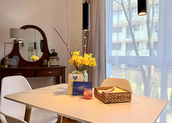 Goście mogą korzystać w apartamencie z aneksu kuchennego oraz delektować się posiłkami w w jadalni. Apartament znajduje się 95 km od lotniska Szczecin-Goleniów im. NSZZ „Solidarność”.